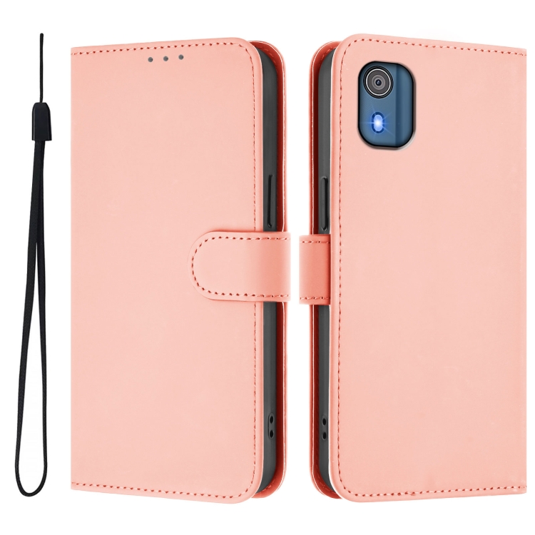 Funda de Piel con Cordón para Nokia C02 Color Liso Tacto Suave (Rosa)