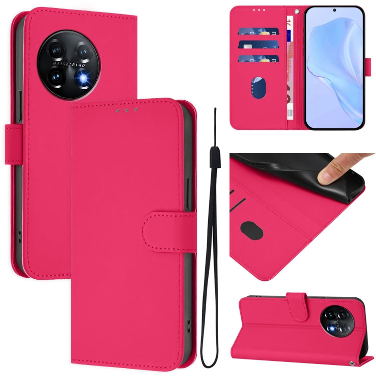 Funda de Piel con Cordón para OnePlus 11 (Rosa y Rojo)