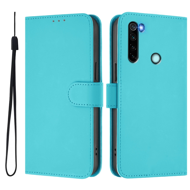 Funda de Piel con Cordón para Redmi Note 8, Color Liso, con Tacto de Piel (Azul Lago)
