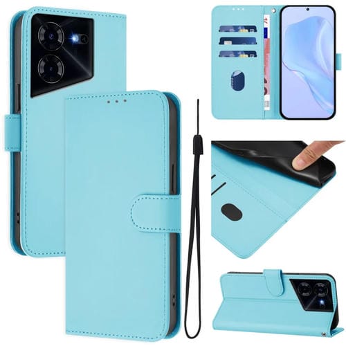 Funda de Piel para Tecno Pova 5 Pro 5G con Textura y Cordón (Azul Cielo)