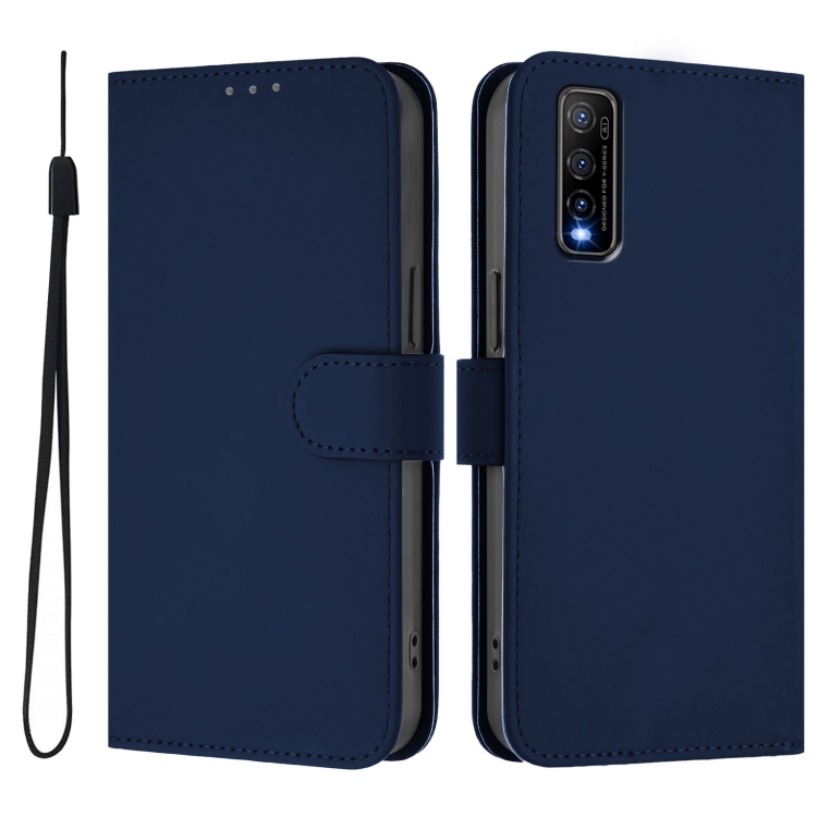 Funda de Piel con Cordón para Teléfono con Diseño de Piel de Color Liso y Tacto Agradable para El Tacto (Azul Marino) para Vivo Y70S
