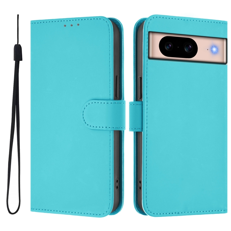 Funda de Piel con Cordón para Google Pixel 8A (Azul Lago) Diseño Liso y Tacto Agradable