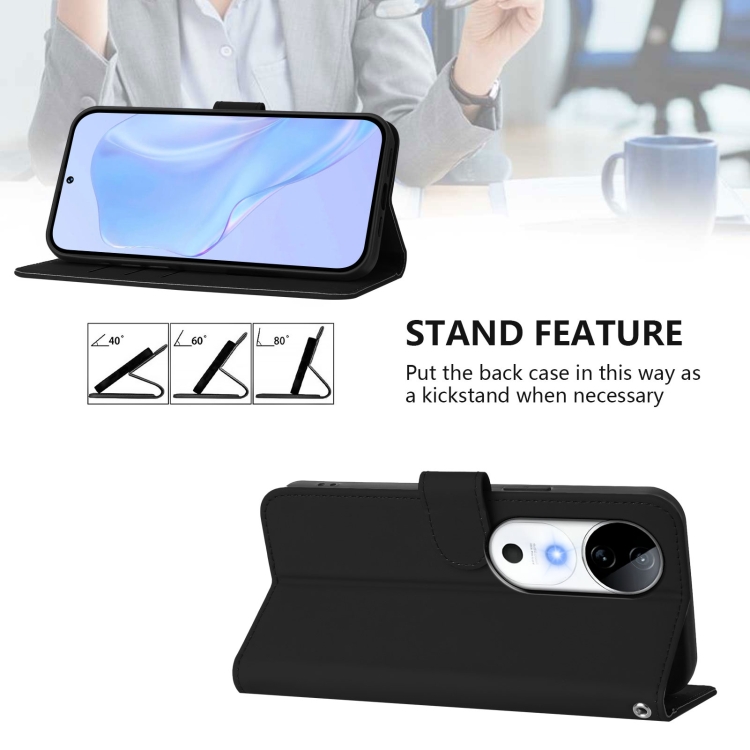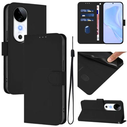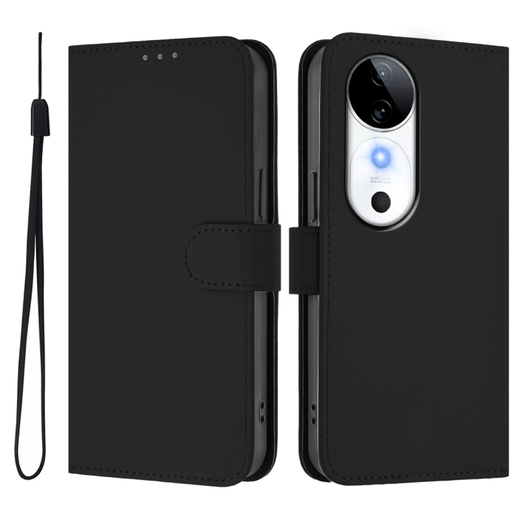 Funda de Piel con Cordón para Teléfono con Diseño de Piel Sintética de Color Liso para Vivo S19 (Negro)