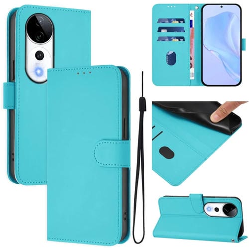 Funda de Piel con Cordón para Teléfono con Diseño de Piel Sintética de Color Liso para Vivo S19 Pro (Azul Lago)
