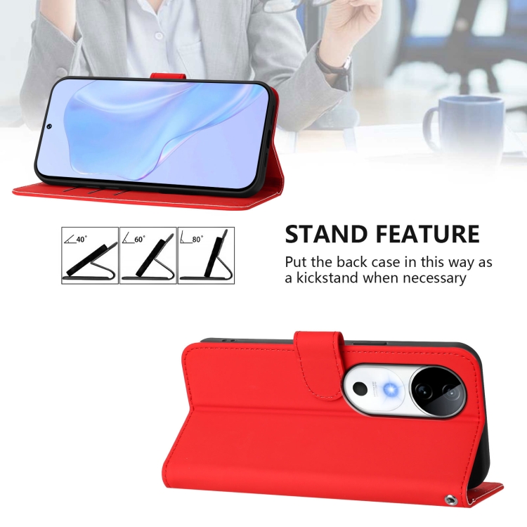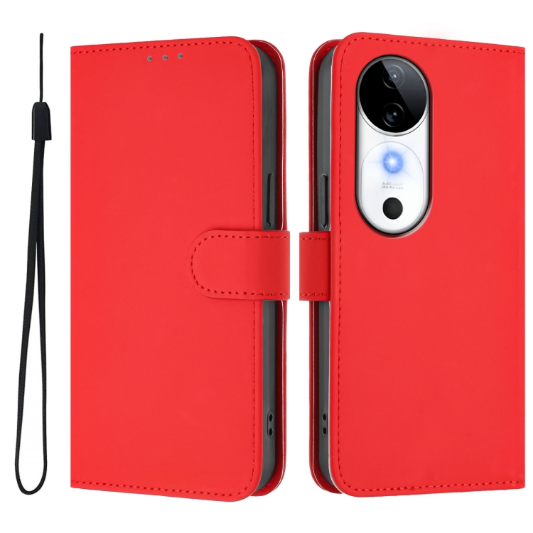 Funda de Piel con Cordón para Teléfono con Diseño de Piel Sintética de Color Liso para Vivo S19 (Rojo)