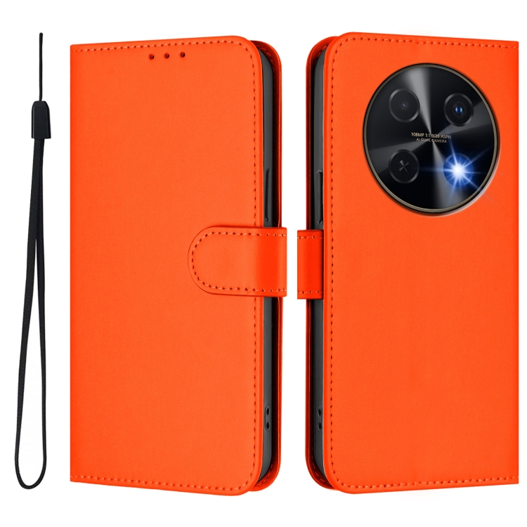 Funda de Piel con Cordón para Huawei Nova 12I 4G con Acabado Liso (Naranja)
