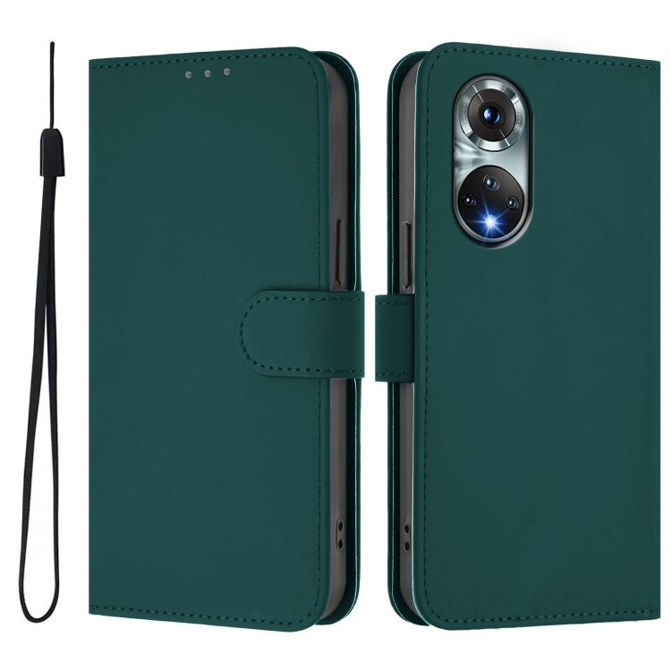 Funda de Piel con Cordón para Huawei Nova 9 con Tacto de Piel (Verde Oscuro)