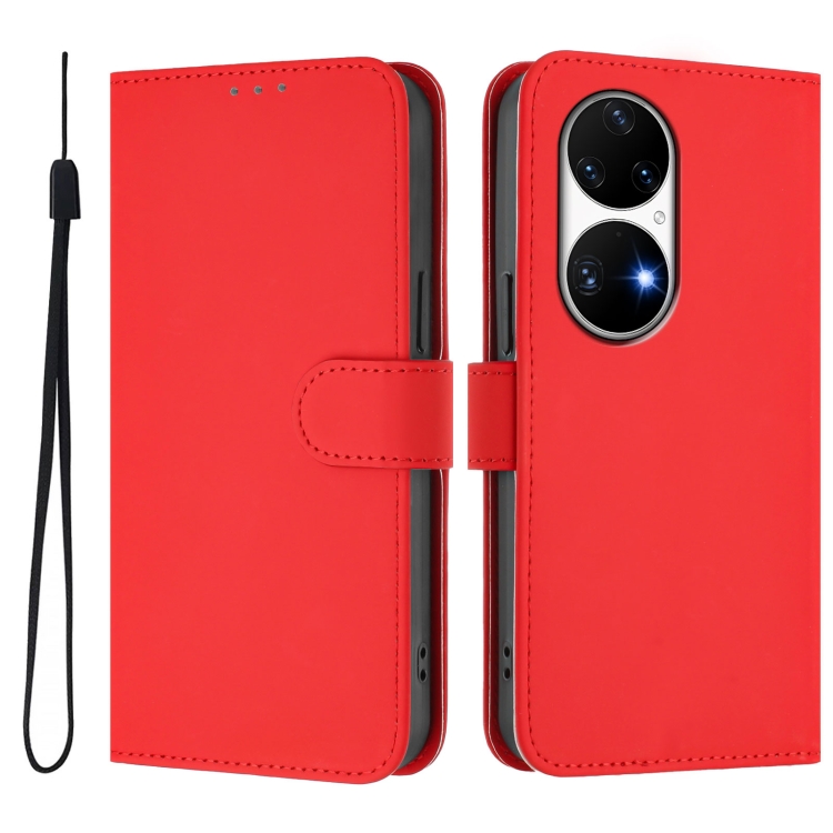Funda de Piel con Cordón para Huawei P50 Pro con Tacto de Piel (Rojo)