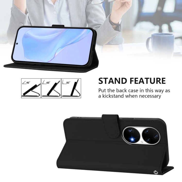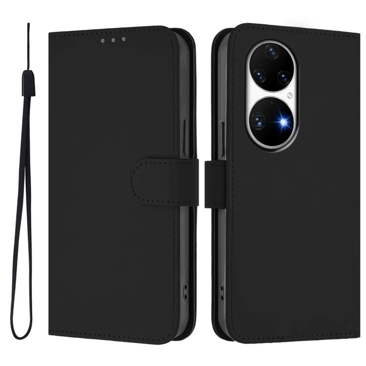 Funda de Piel con Cordón para Teléfono Huawei P50 Pro Textura Piel (Negro)