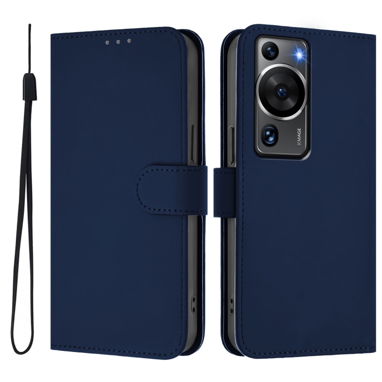 Funda de Piel con Cordón para Teléfono Huawei P60/P60 Pro con Tacto de Piel (Azul Marino)