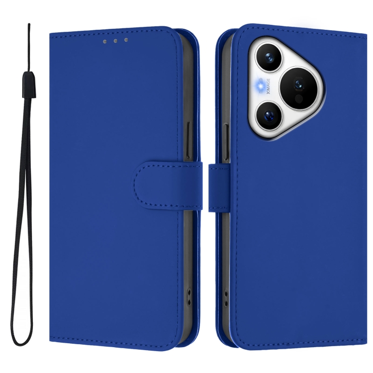 Funda de Piel con Cordón para Teléfono Huawei Pura 70 Skin Feel (Azul Oscuro)