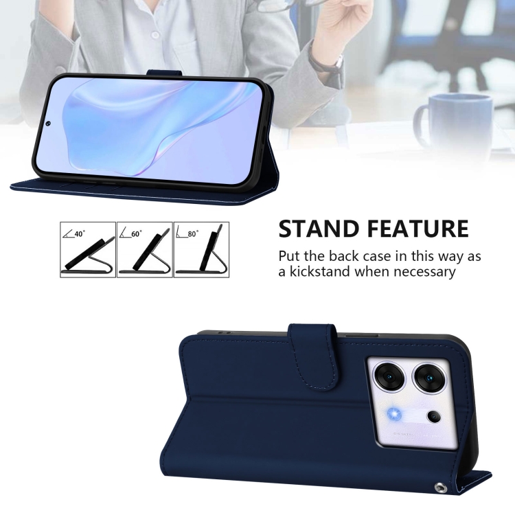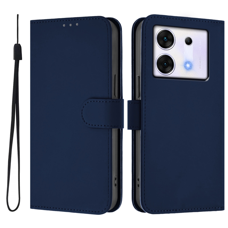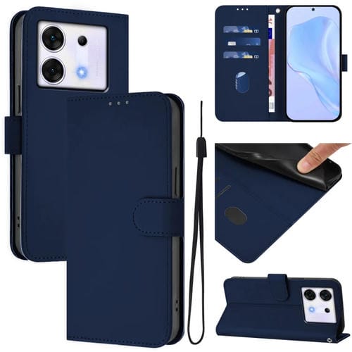 Funda de Piel con Cordón para Teléfono Infinix Zero 30 5G con Tacto de Piel (Azul Marino)