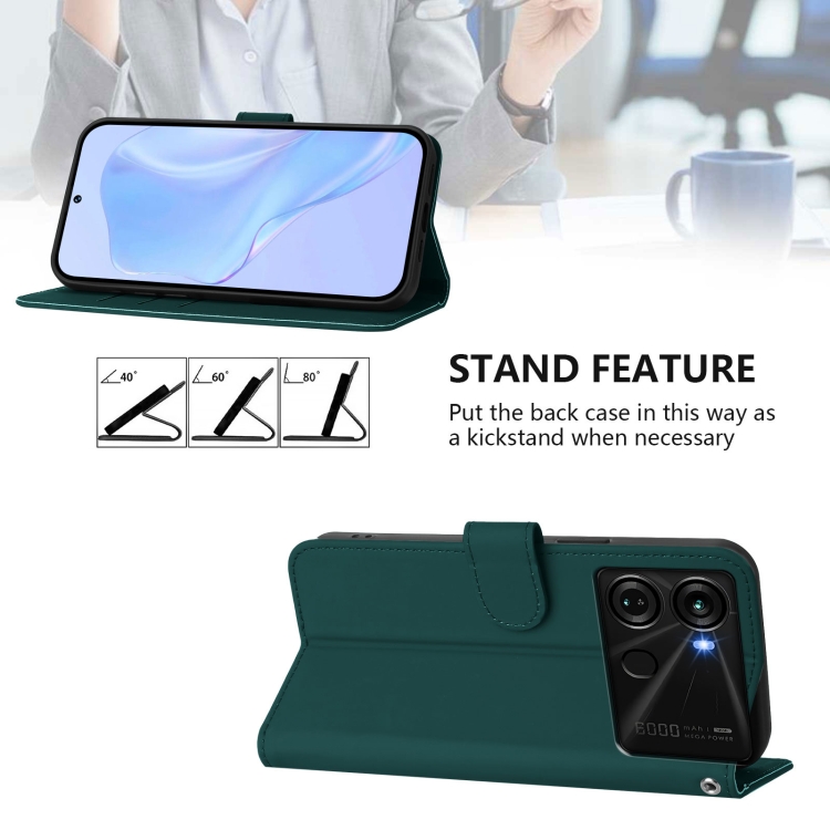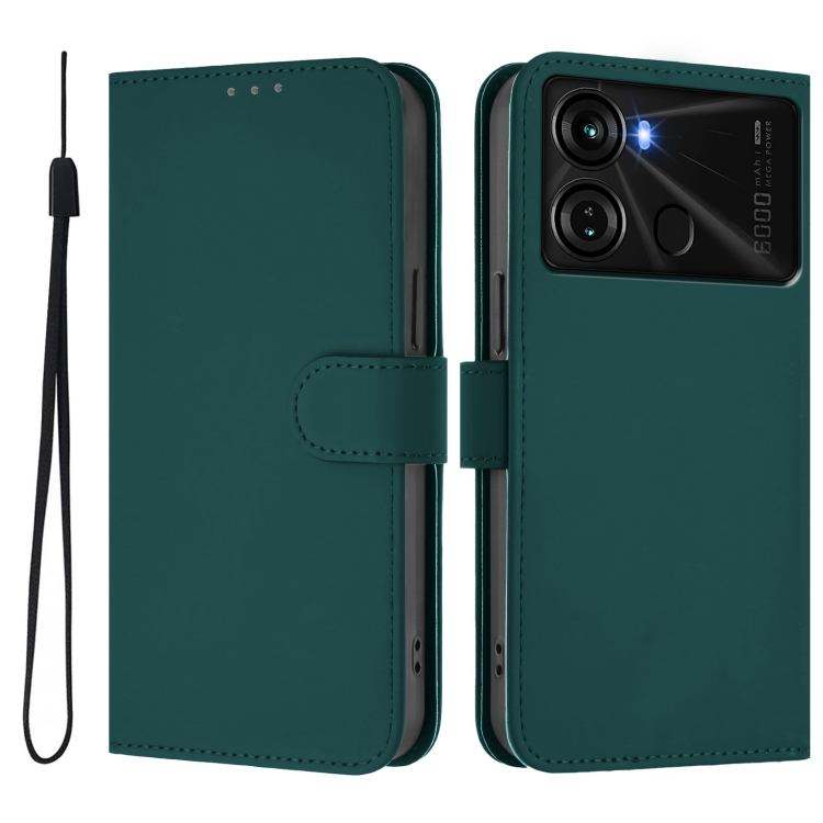 Funda de Piel con Cordón para Teléfono Itel P40 Skin Feel (Verde Oscuro)
