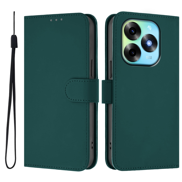 Funda de Piel con Cordón para Teléfono Itel S23+ Skin Feel (Verde Oscuro)