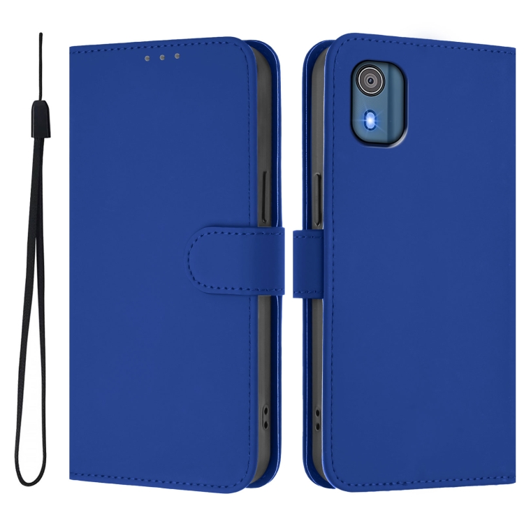 Funda de Piel con Cordón para Teléfono Nokia C02 (Azul Oscuro) Tacto de Piel