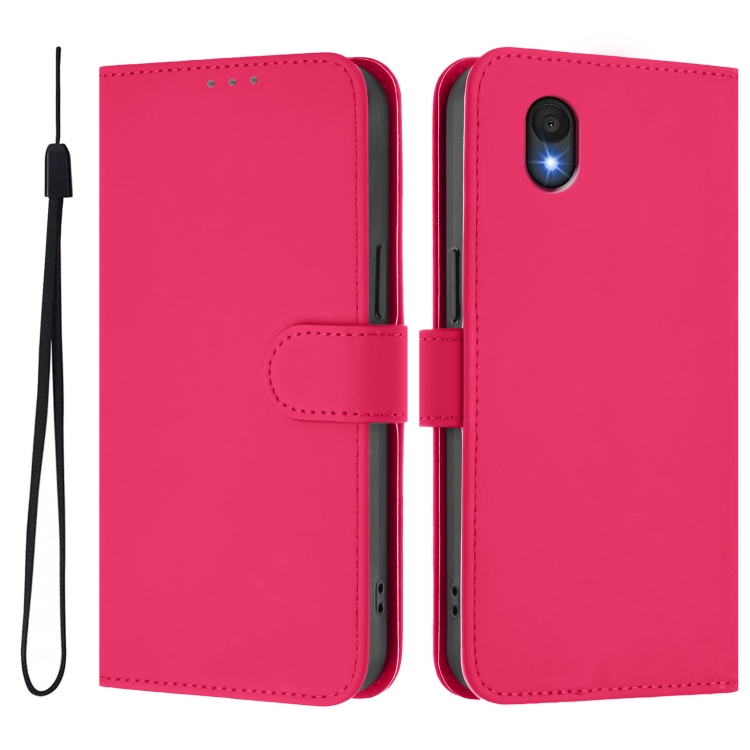 Funda de Piel con Cordón para Teléfono TCL 201 con Tacto de Piel (Rosa Rojo)