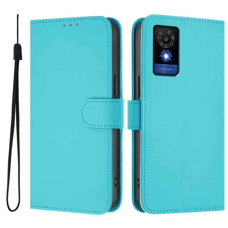 Funda de Piel con Cordón para Teléfono TCL 501 con Tacto de Piel (Azul Lago)
