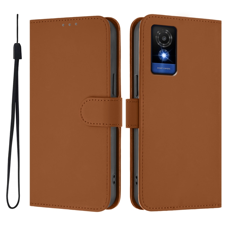 Funda de Piel con Cordón para Teléfono TCL 501 con Tacto de Piel (Marrón)