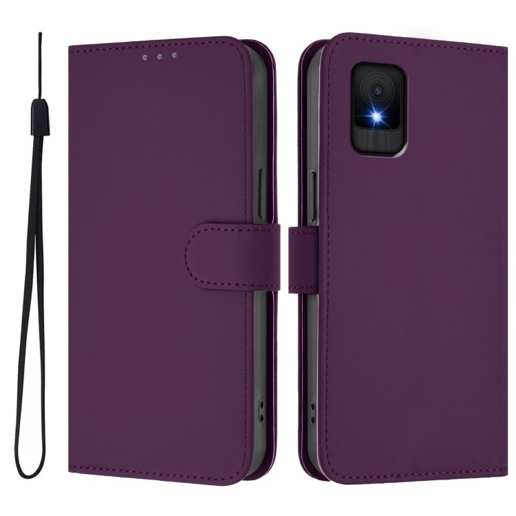 Funda de Piel con Cordón para Teléfono TCL 502 con Tacto de Piel (Violeta)