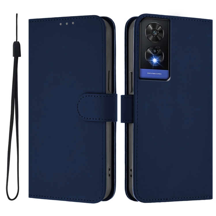 Funda de Piel con Cordón para Teléfono TCL 505 Skin Feel (Azul Marino)