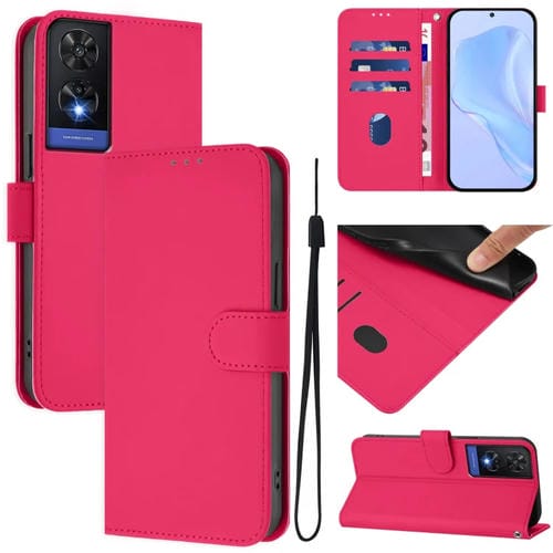 Funda de Piel con Cordón para Teléfono TCL 505 Skin Feel (Rosa Rojo)