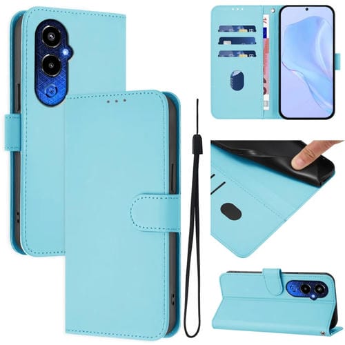 Funda de Piel con Textura y Cordón para Tecno Pova 4 Pro (Azul Cielo)