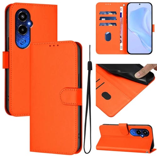 Funda de Piel con Cordón para Tecno Pova 4 Pro (Naranja)