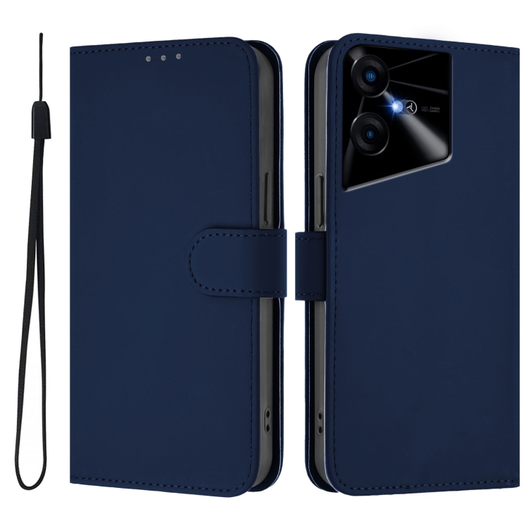Funda de Piel con Textura y Cordón para Tecno Pova Neo 3 (Azul Marino)