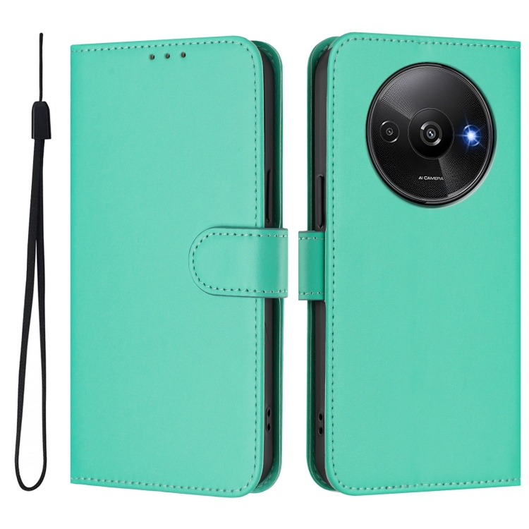 Funda de Piel con Cordón para Teléfono Xiaomi Poco C61 4G con Tacto de Piel de Color Liso (Verde)