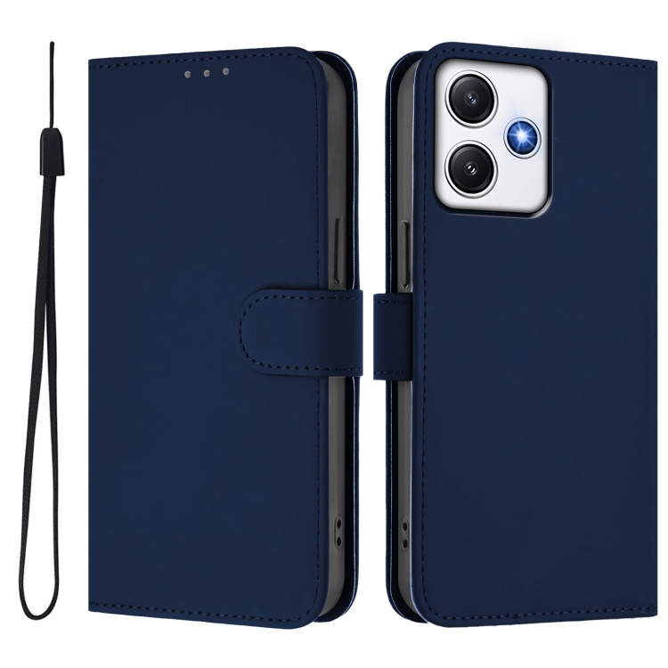 Funda de Piel con Cordón para Teléfono Xiaomi Poco M6 Pro 5G con Diseño de Piel Sintética de Color Liso (Azul Marino)