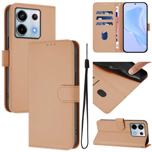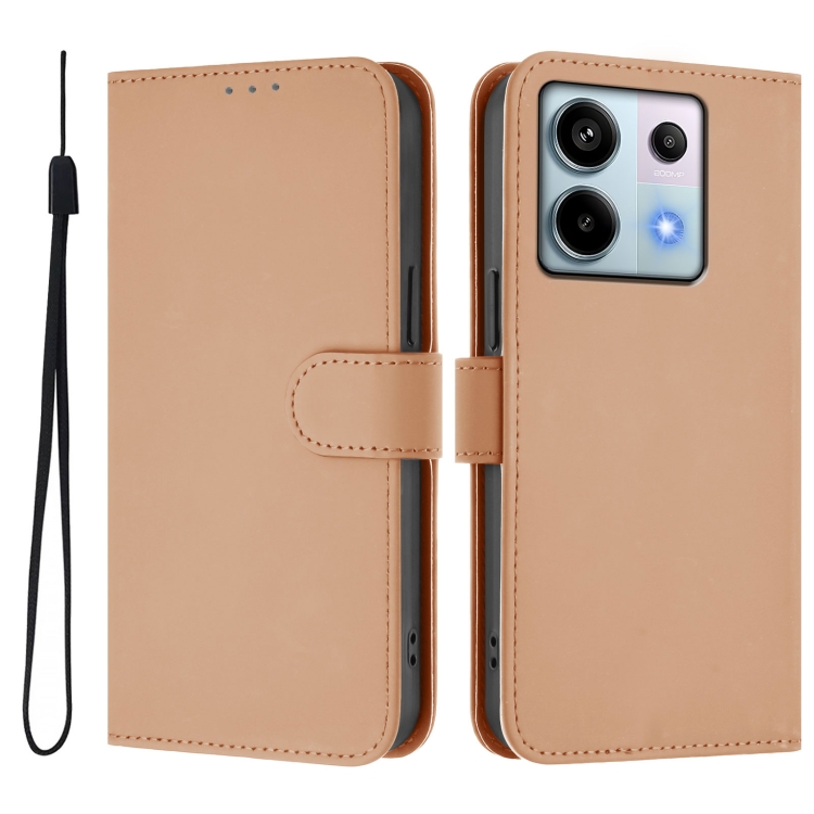 Funda de Piel con Cordón para Teléfono Xiaomi Poco X6 5G con Tacto de Piel de Color Liso (Desnudo)