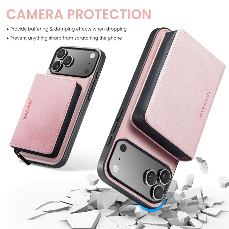 Funda de piel con cremallera magnética horizontal tipo libro JEEHOOD J02 para iPhone 17 Pro Max (rosa)