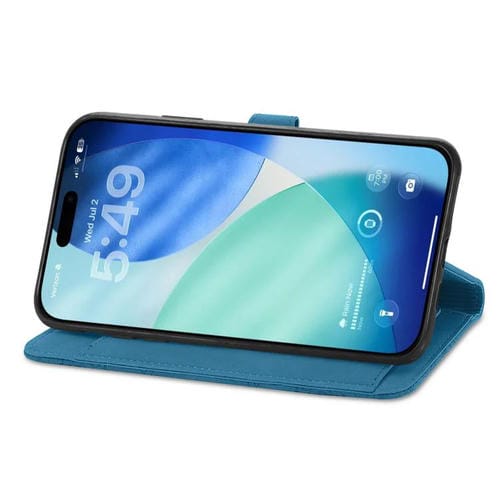 Funda de piel con cremallera y diseño floral en relieve para iPhone 17 (azul)