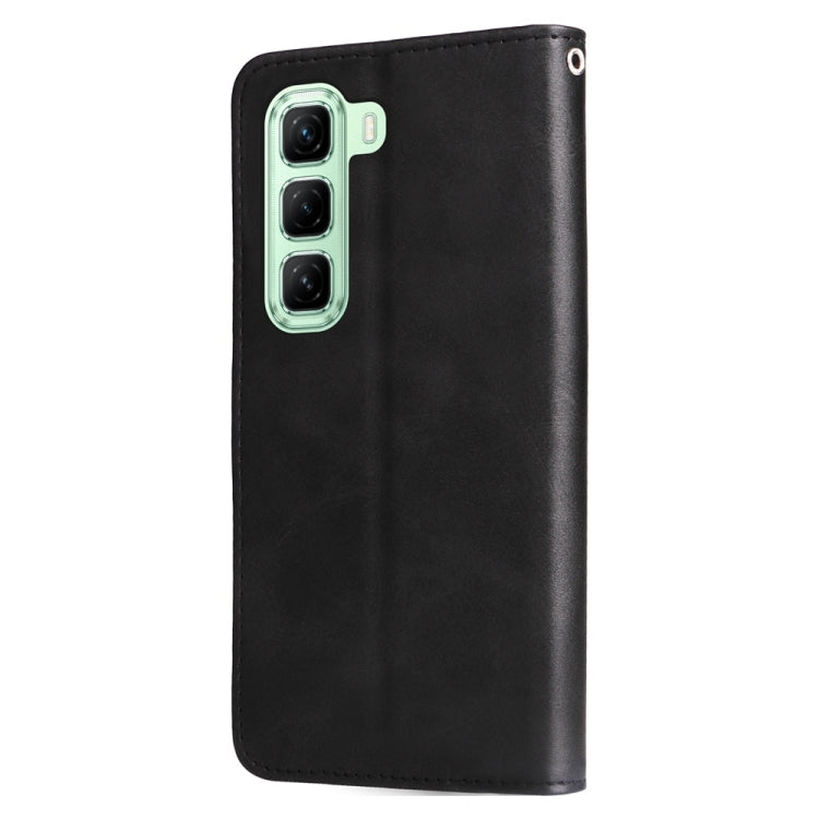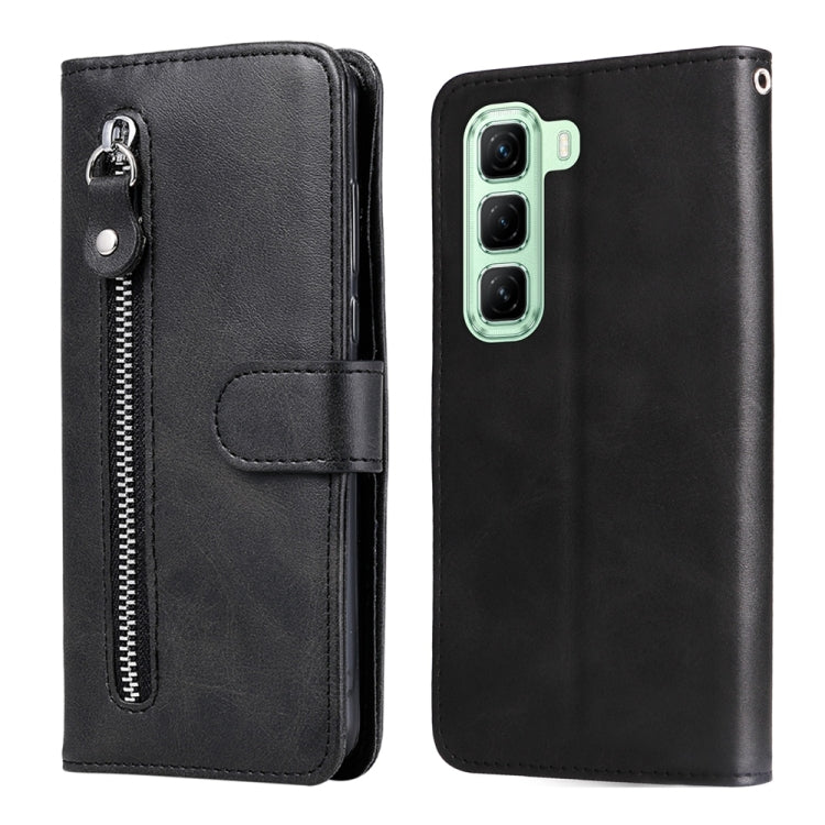 Funda de Piel con Cremallera y Textura de Becerro para Infinix Hot 50 5G (Negra)