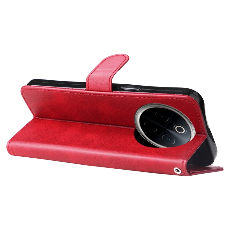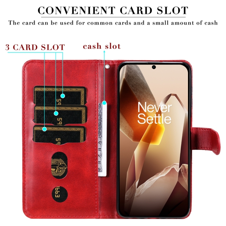 Funda de Piel con Cremallera y Textura de Becerro para OnePlus 13 (Rojo)