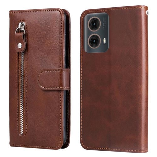 Funda de Piel con Cremallera y Textura de Becerro para Motorola Moto G85/S50 Neo (Marrón)