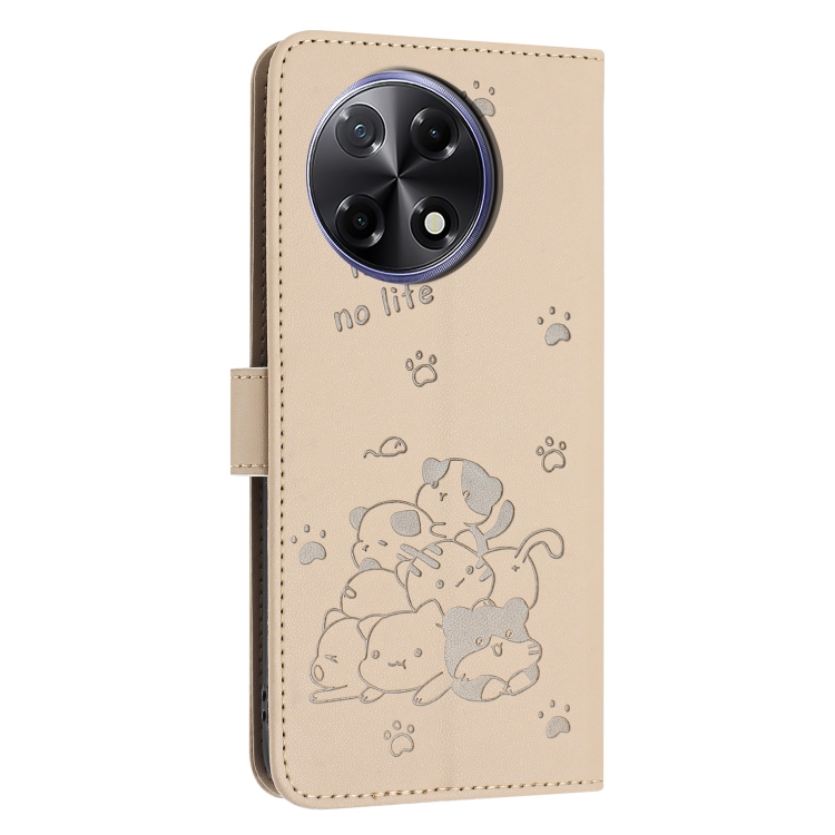 Funda de Piel para Tecno Camon 30S con Diseño de Gatito en Relieve y Cordón (Beige)