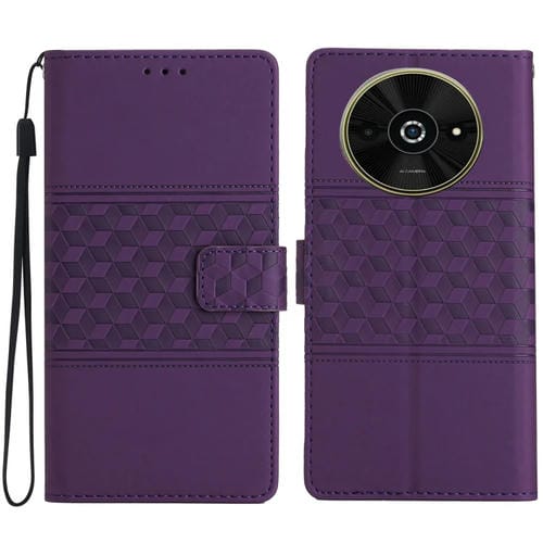 Funda de Piel con Efecto Piel En Relieve de Diamante para Xiaomi Poco C61 (Morado)