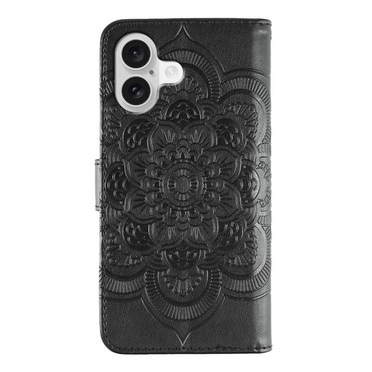 Funda de piel con estampado de mandala solar para iPhone 17 (negra)