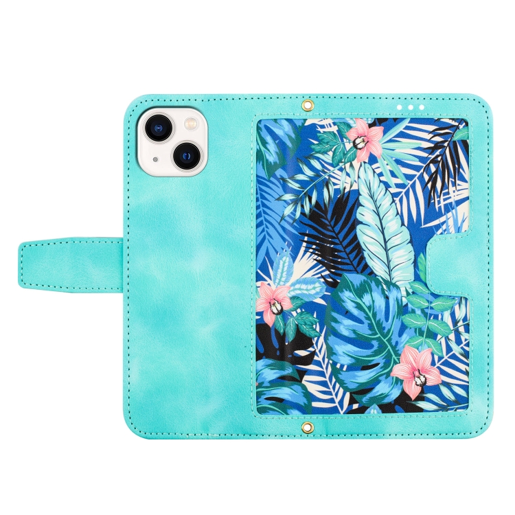 Funda de Piel para iPhone 15 con Estampado Floral y Cordón (Verde)