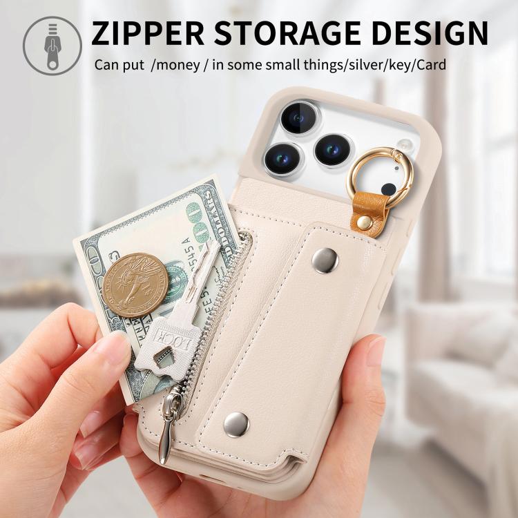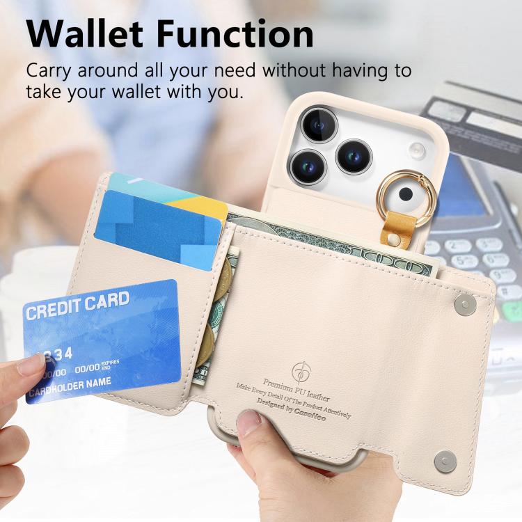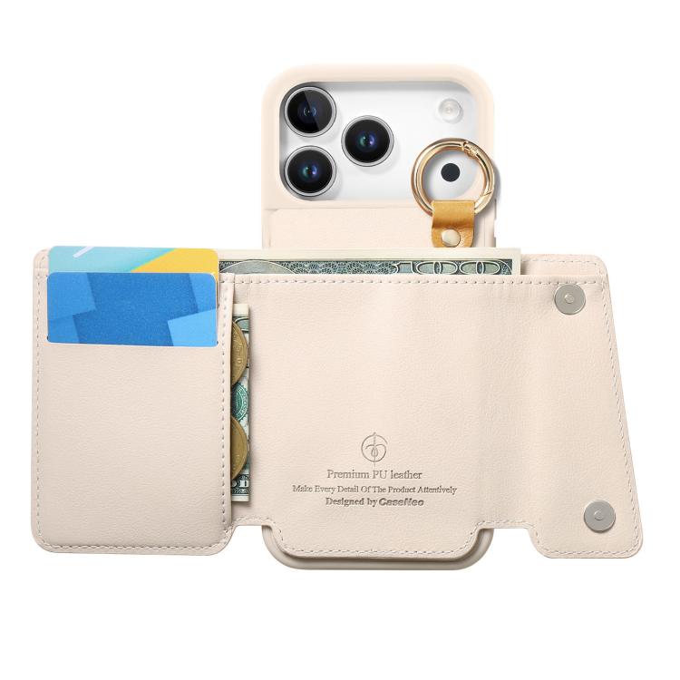 Funda de piel con hebilla en forma de D para iPhone 17 Pro Max (Beige)
