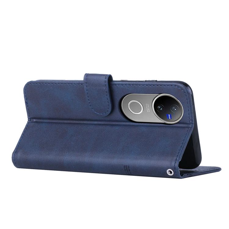 Funda de Piel con Hebilla y Textura de Becerro con Costuras Globales para Vivo V50 5G (Azul)