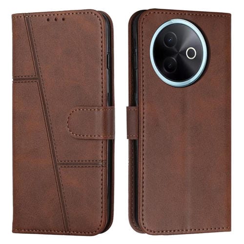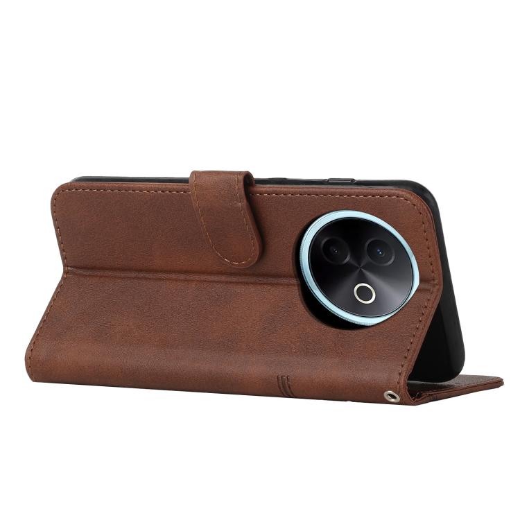 Funda de Piel con Hebilla y Textura de Becerro con Costuras Globales para Vivo Y39 5G (Marrón)