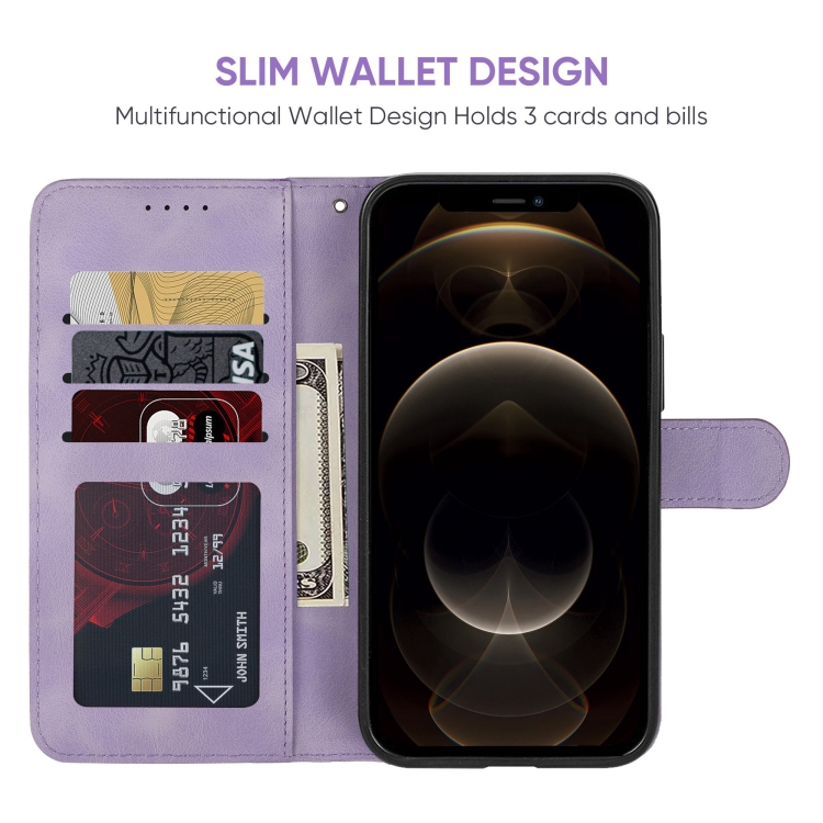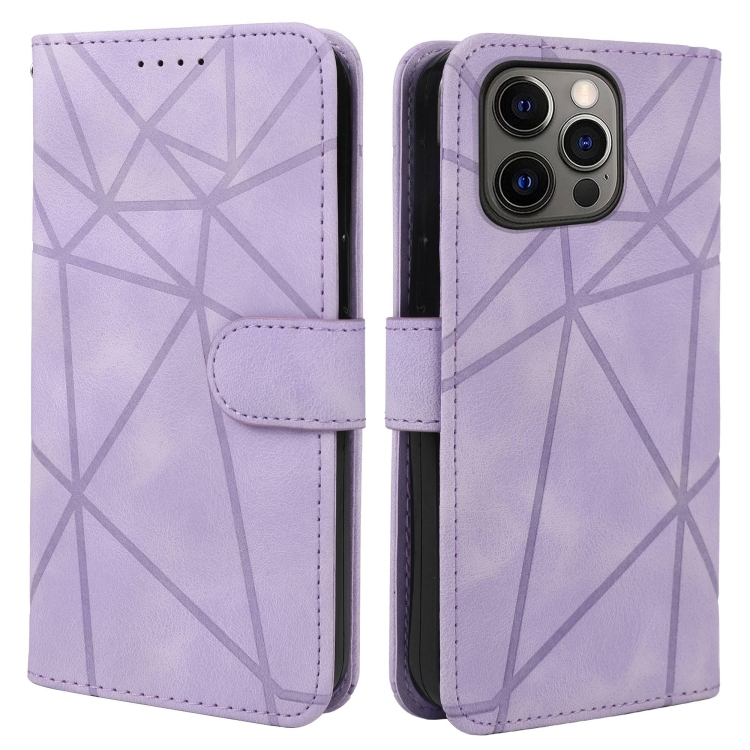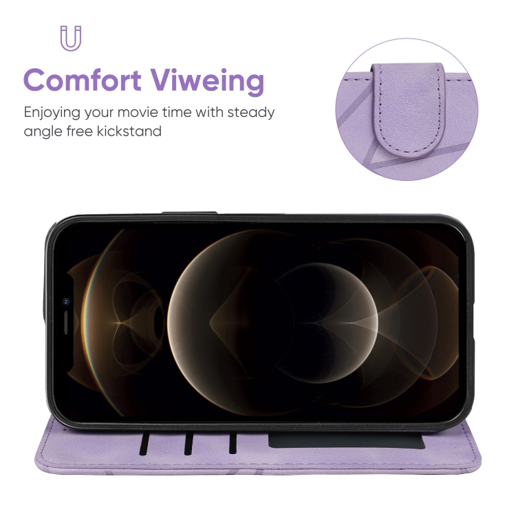 Funda de piel para iPhone 12 Pro Max con líneas geométricas y tacto sedoso (Morado)