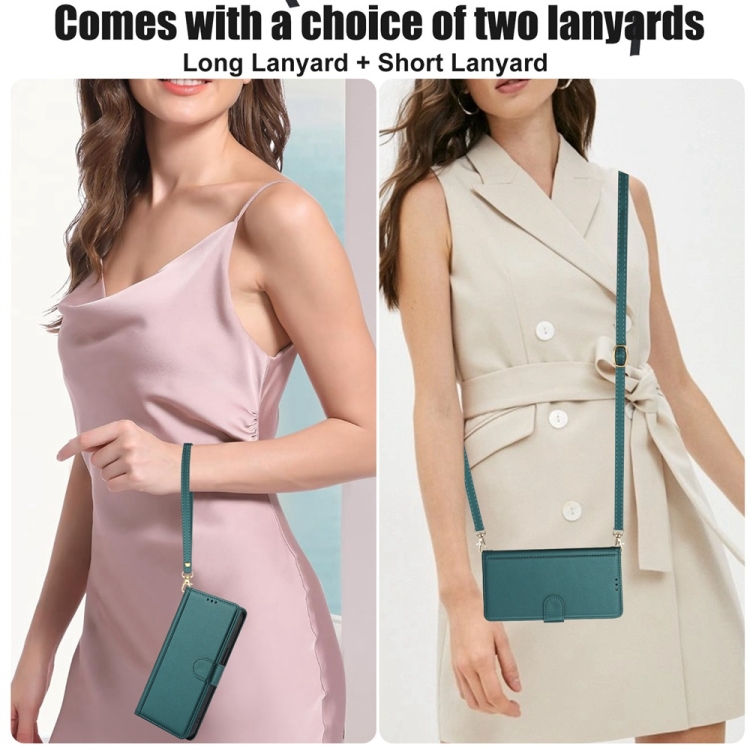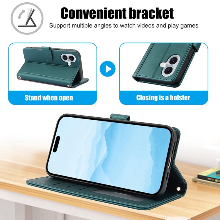 Funda de Piel para iPhone 16 con Ranuras para Tarjetas y Cordón Doble (Verde)
