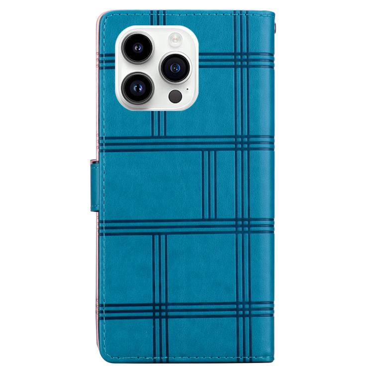 Funda de piel con relieve a cuadros para iPhone 15 Pro Max (azul)