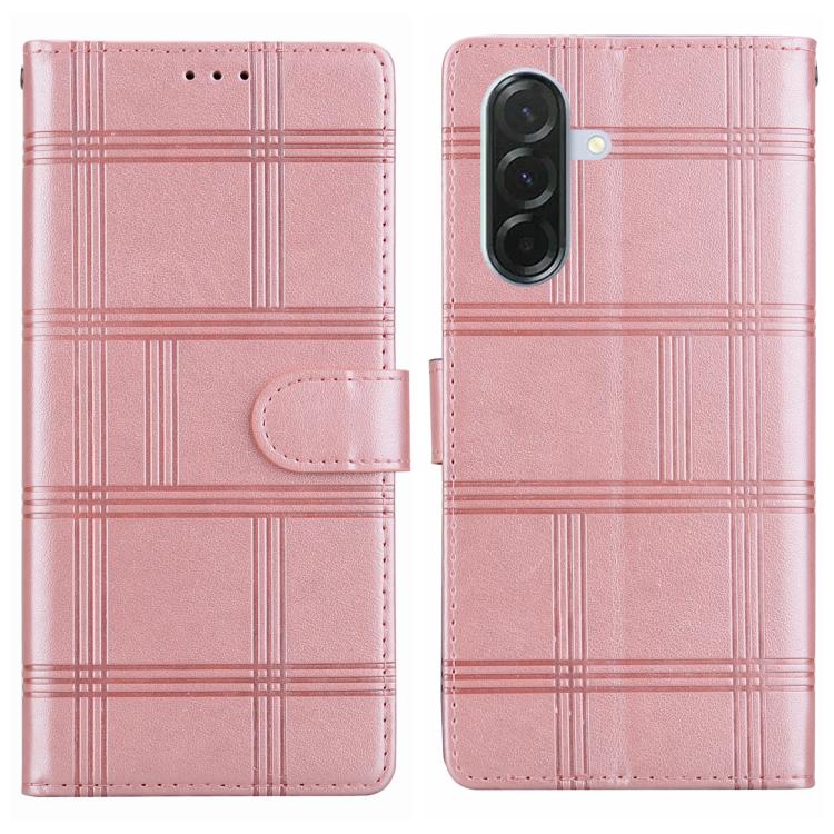 Funda de piel con relieve a cuadros para Samsung Galaxy A36 5G/A56 5G (rosa)