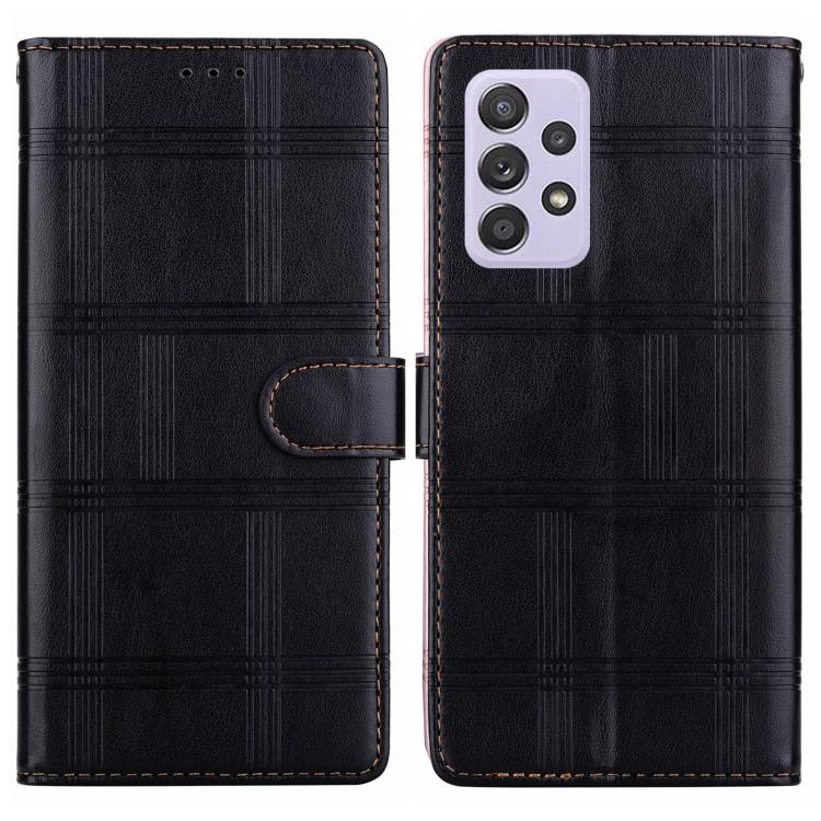 Funda de piel con relieve a cuadros para Samsung Galaxy A52/A52s 5G (negra)