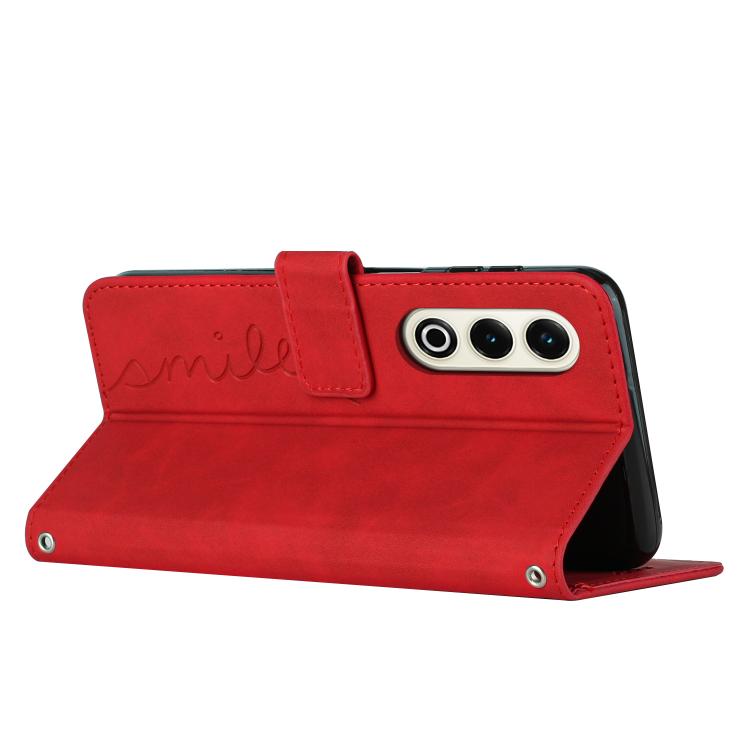 Funda de Piel con Relieve de Corazón para Teléfono Itel S25 con Cordón Largo (Rojo)