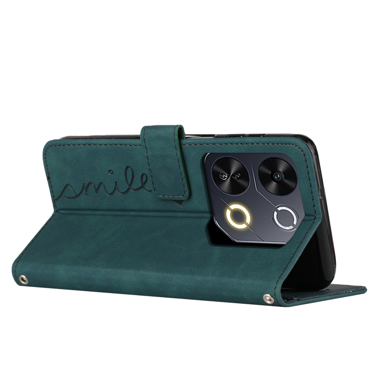 Funda de Piel con Relieve de Corazón y Cordón Largo para Teléfono Itel P65 (Verde)